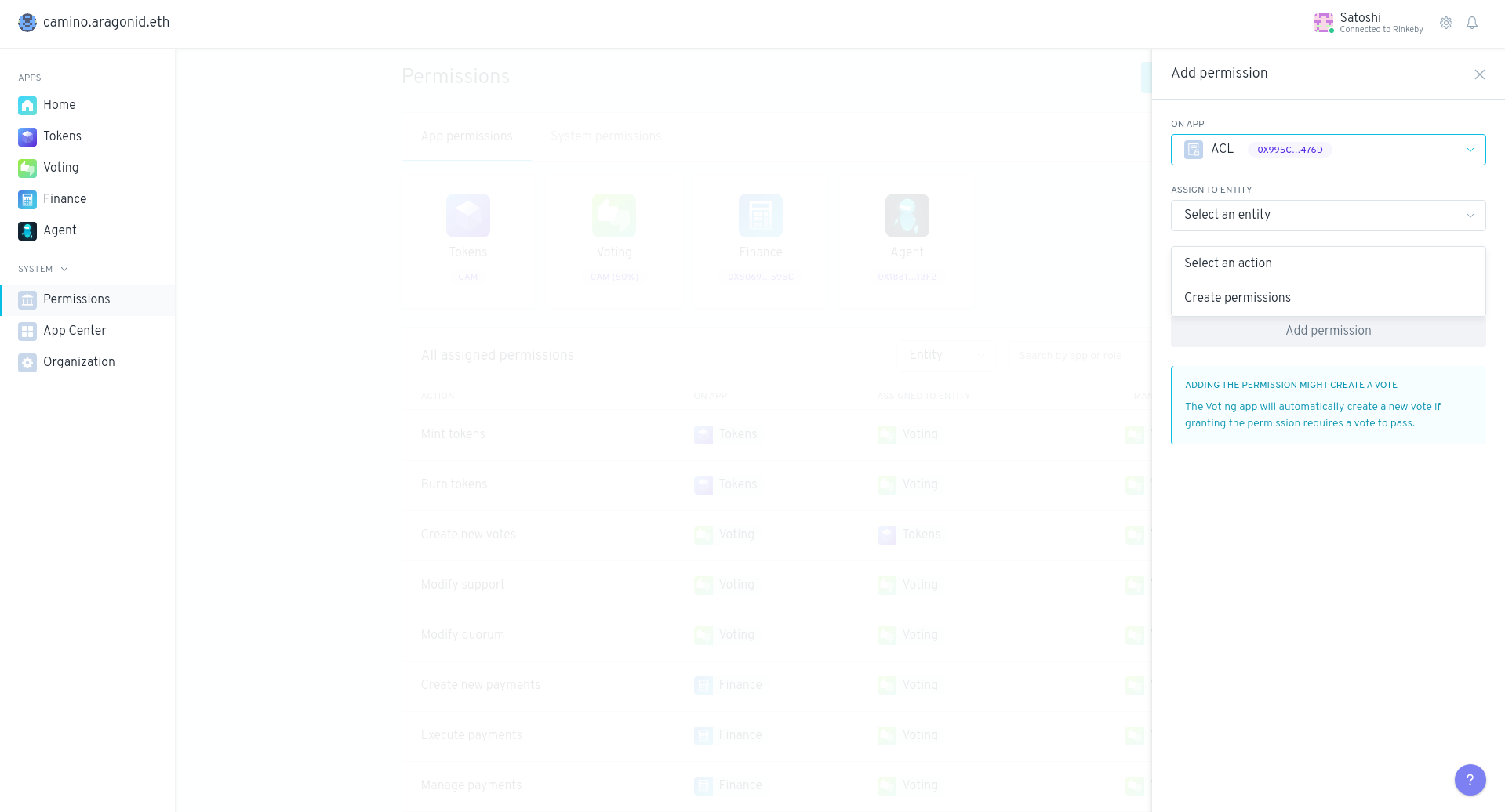 Por exemplo, qualquer conta pode ter permissão para criar um voto, mas só os detentores dos tokens da organização podem ter permissão para votar.