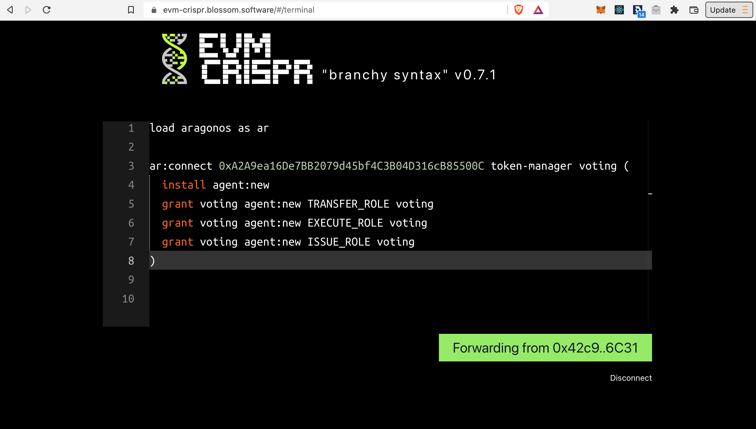 Você precisa do aplicativo Agente, mas ainda não foi instalado na sua DAO? Não se preocupe, ele ainda pode ser instalado usando o EVM Crispr, uma ferramenta para modificar 'o ADN' da sua DAO.