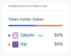 Na seção Distribuição de Propriedade, você pode ver quais entidades possuem qual porcentagem do fornecimento dos tokens da organização. Isso pode ser útil como uma verificação pontual para ver como a propriedade dos tokens está concentrada na organização.
