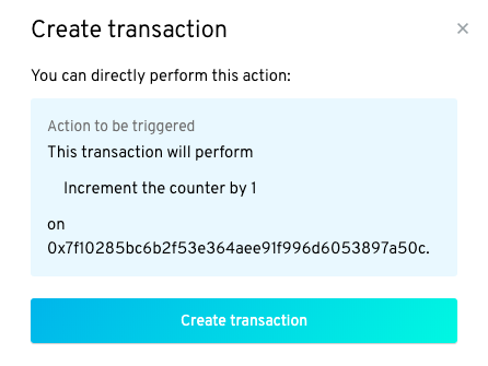 Double check that the action that's about to be triggered is the one you wish to perform. Then click on *Create transaction.*