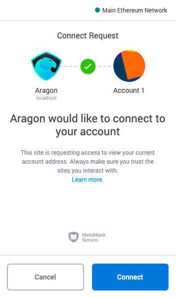 You should see a connection request from Aragon. Click on the *Connect* button to accept it.