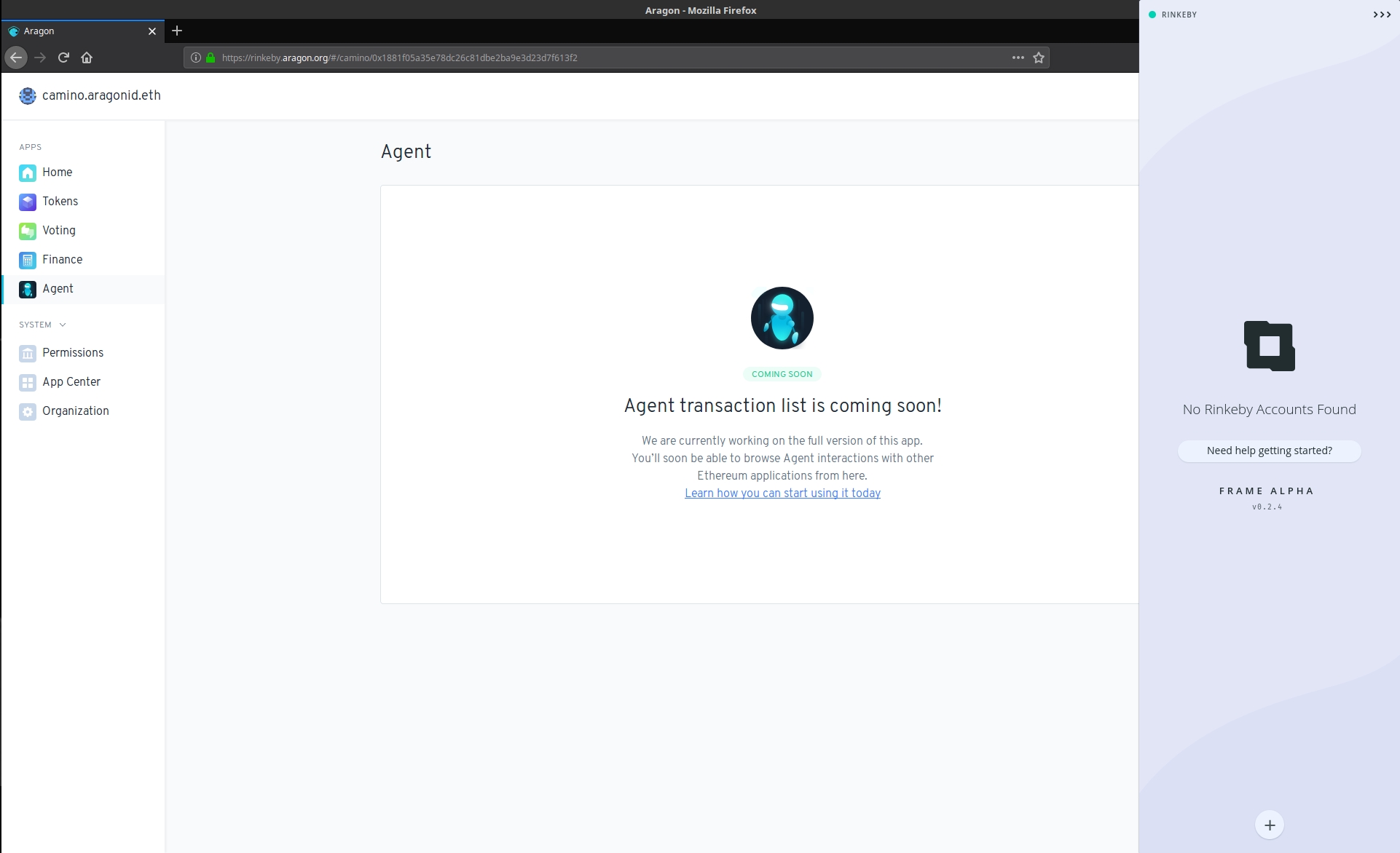 अन्य एथेरियम स्मार्ट कान्ट्रैक्ट के साथ सीधे बातचीत करने के लिए एजेंट ऐप का उपयोग करने का सबसे आसान तरीका फ़्रेम की स्मार्ट खाता सुविधा का उपयोग करना है। फ़्रेम एक डेस्कटॉप-देशी एथेरियम प्रदाता है जो एजेंट ऐप के लिए मूल समर्थन के साथ है।