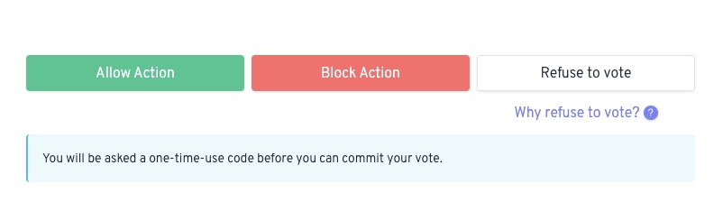 When the voting time comes for an Aragon Govern dispute, you need to decide if the Actions should be allowed, blocked, or if you don't have enough context to rule upon it.