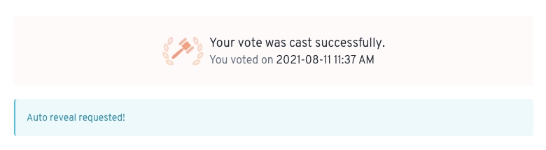 If you do not enable auto-reveal and do not manually reveal your vote when the reveal stage is available, the system will consider that you did not vote, and you will get your tokens slashed.
