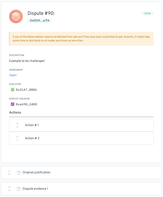On Aragon Govern, an action can be a bundle of several transactions. This is what is shown in Aragon Court. Understanding the Actions is essential to ruling on a dispute.