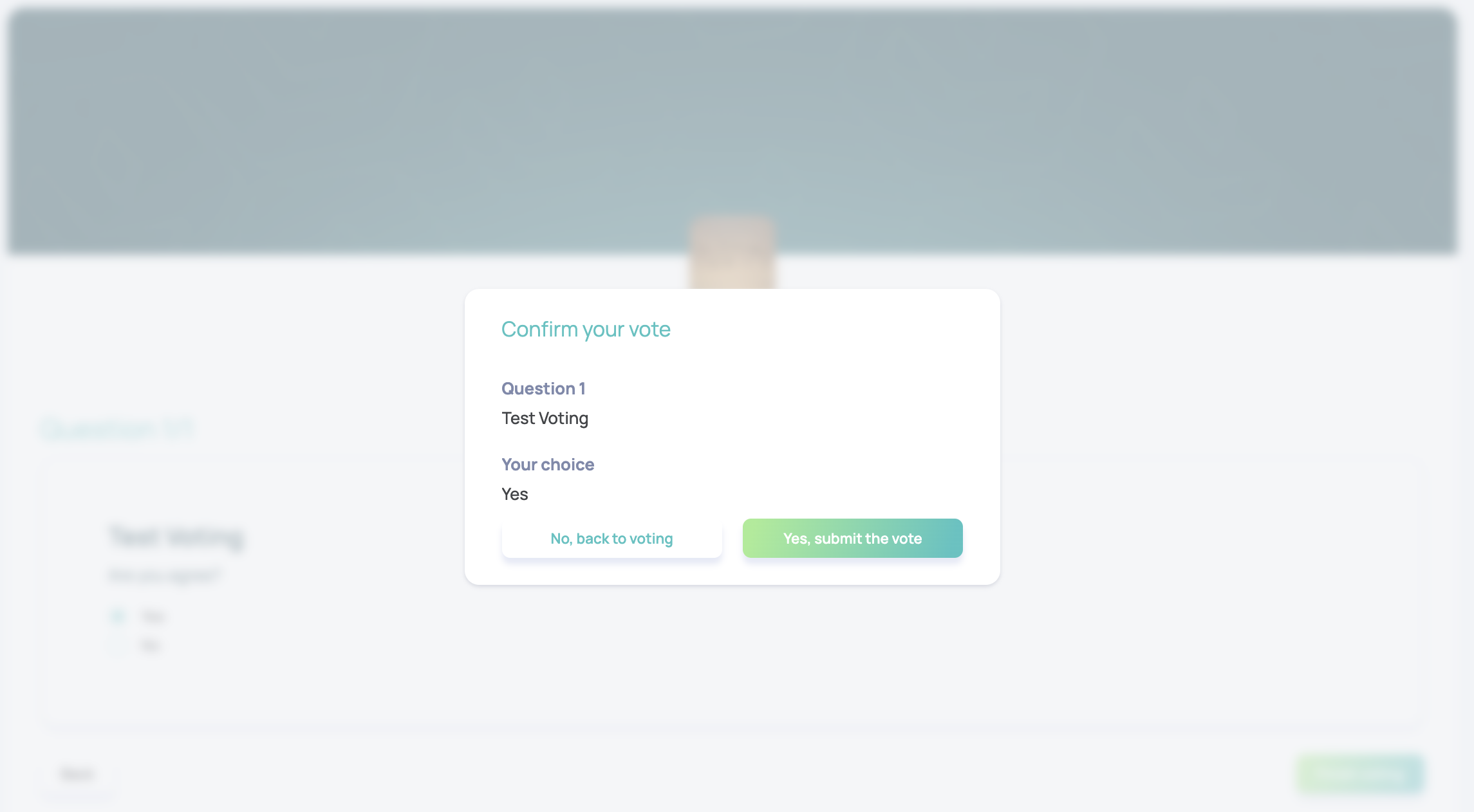 Click on the Finish voting button and confirm your vote: Yes, submit the vote.