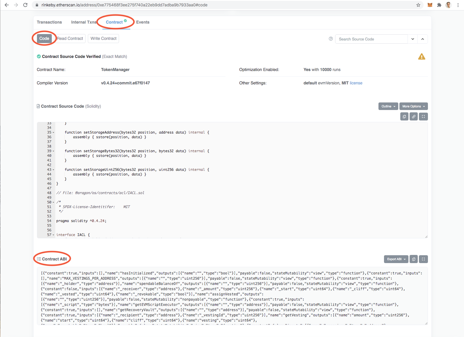 6. Trouvez le contrat de base de l'application Aragon sélectionnée avec laquelle vous voulez interagir.